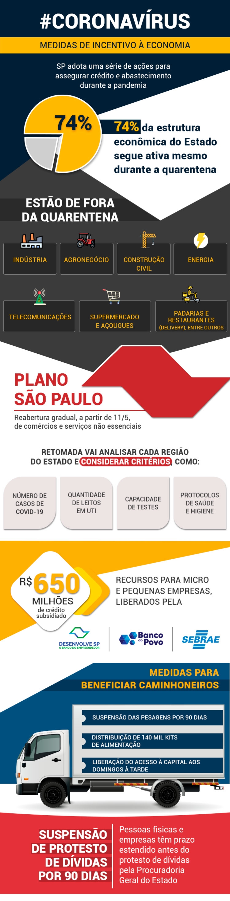 Estado vem adotando uma série de ações voltadas a empresários e com o objetivo de assegurar abastecimento durante pandemia de COVID-19. Na quarta-feira, 29, as Secretarias de desenvolvimento, da Fazenda e do Planejamento divulgaram em conjunto um resumo das principais iniciativas tomadas para minimizar os impactos econômicos provocados pelas medidas de isolamento social em virtude do aumento de casos de coronavírus no Estado.