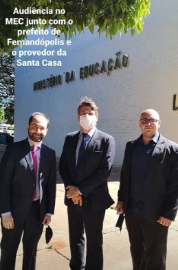 A universidade reconhece ainda o apoio do deputado federal Fausto Pinato, que é de Fernandópolis, do prefeito da cidade, André Pessuto (DEM), que se reuniu com Sigollo na última segunda-feira, do provedor da Santa Casa do município, Marcus Chaer, e da sociedade civil. Todos participaram de audiência no MEC na quarta-feira, 20, em Brasília.