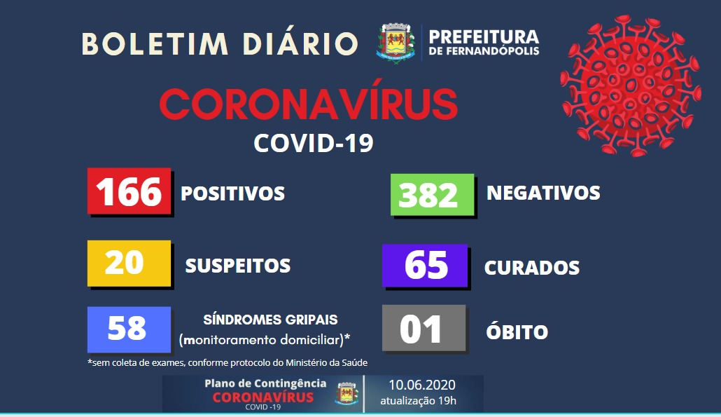 A Prefeitura de Fernandópolis informou que foram registrados mais 30 novos casos de Covid-19 no município. Segundo a prefeitura, a grande incidência de positivos é decorrente da busca ativa da Vigilância Sanitária em pessoas que tiveram contato com pacientes contaminados.