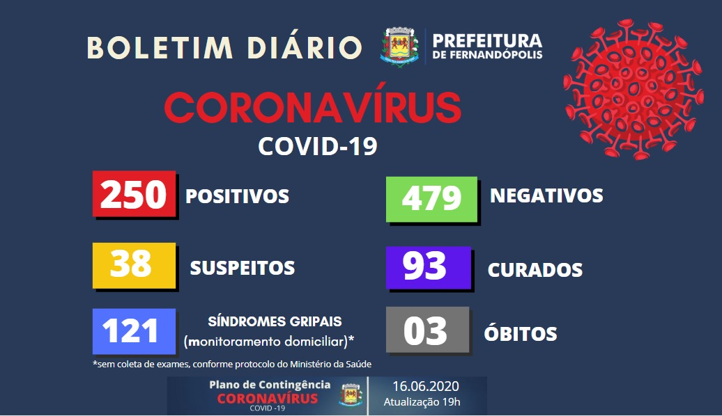 Um óbito suspeito por Coronavírus também foi registrado nesta terça, 16. Trata-se de um homem, na faixa etária de 20 a 29 anos. Ele apresentava comorbidades e estava internado em outro Município. A Secretaria aguarda resultado do exame que foi colhido e enviado para análise do Instituto Adolfo Lutz, em Rio Preto.