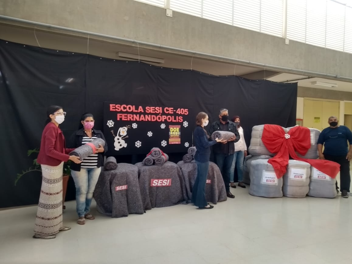 A Escola Sesi de Fernandópolis distribuiu nesta sexta-feira, 3, 480 cobertores para três entidades parceiras que farão a entrega para as famílias carentes cadastradas nos projetos Os Sonhadores, Sonhia e Paróquia Santo Expedito. Cada entidade recebeu 160 cobertores.