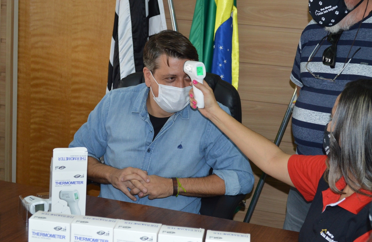 A doação foi feita pela empresa ‘PetShop Casa das Rações’, que entregou 10 novos termômetros infravermelhos que ajudarão a evitar propagação da Covid-19 nos principais locais de atendimento à população, dentro do ambiente público, como a UPA - Unidade de Pronto Atendimento - Postos de Saúde e demais unidades de saúde da rede pública municipal.