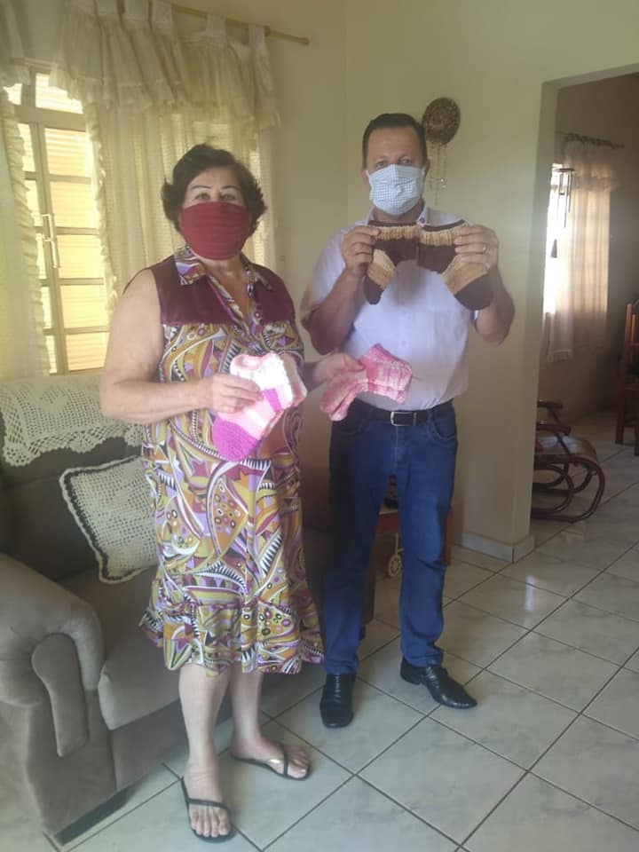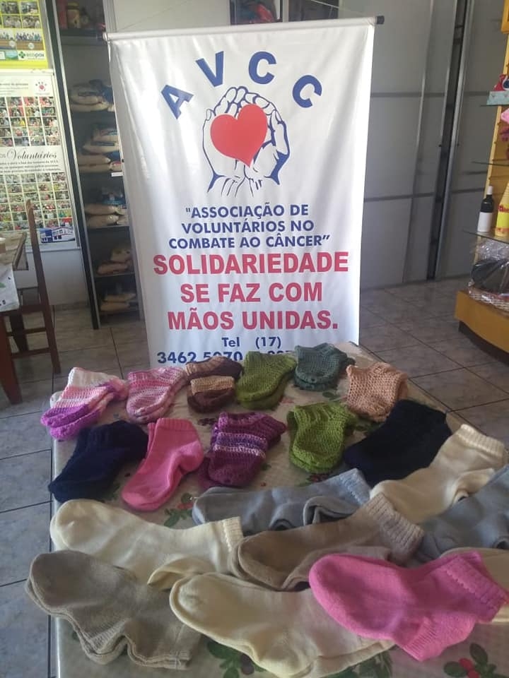 A AVCC – Associação dos Voluntários de Combate ao Câncer - recebeu nesta quarta-feira, 8, uma doação de meias de lã feitas de crochê pela simpática e generosa dona Iraceles Garcia, popularmente conhecida como Celinha, que contou com a indispensável ajuda e colaboração das amigas Dora, Dona Gessi,e da amiga Evanilde de Santa Fé do Sul que juntas, confeccionaram e doaram 10 pares de meias feitos por ela na máquina de tricô.