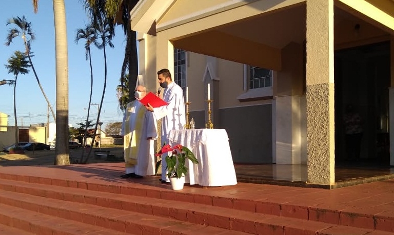 Na saída da carreata, padre Natalino orientou as pessoas para que na chegada na Rua São Paulo, ao lado da Igreja Matriz, todos abram os vidros dos carros para receber a benção. “Não tirem as máscaras”, alertou o pároco.