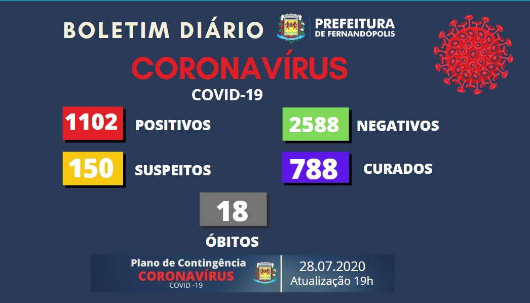 Apesar de ser relativo menor o número de casos positivos informado pela Prefeitura de Fernandópolis, por meio da Secretaria Municipal de Saúde, média diária se mantém alta e o município registra mais 20 novos casos de Covid-19 nesta terça-feira, 28. Ainda segundo a prefeitura, dos pacientes que testaram positivo, 788 já receberam alta médica, 18 morreram em decorrência da doença e 296 estão em tratamento médico.