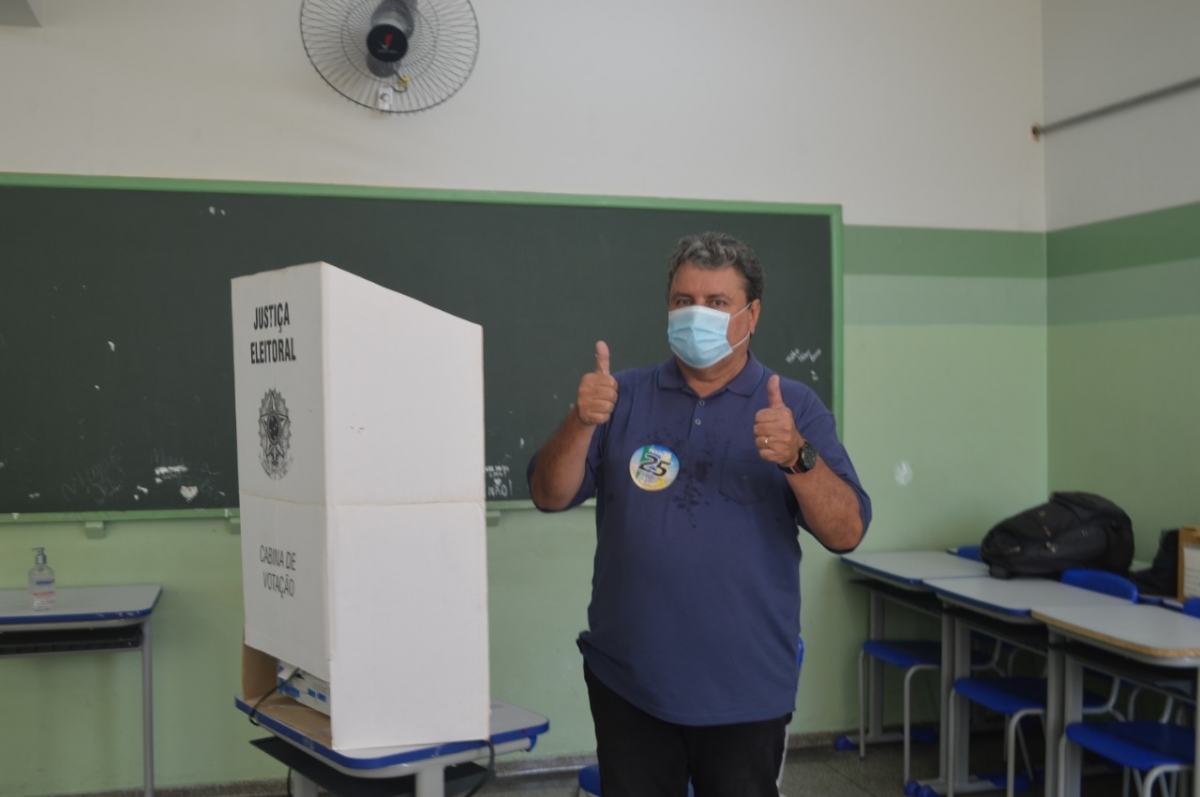 O prefeito André Pessuto (DEM), candidato a reeleição votou agora há pouco na Escola Joaquim Antonio Pereira, acompanhado do candidato a vice-prefeito Artur Watson Silveira, que votou mais cedo na Escola EELAS, e do deputado Fausto Pinato que também já votou na Escola Afonso Cáfaro.