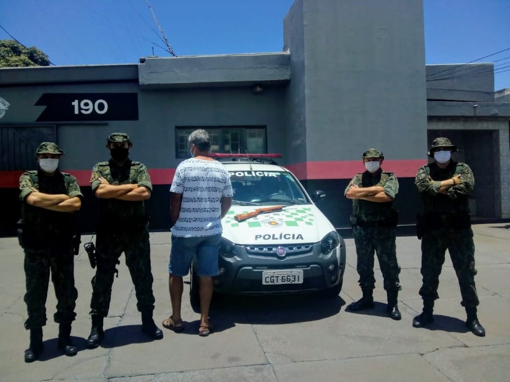 de pressão adulterada e adaptada para utilização de munição calibre 22, não sendo encontrada nenhuma munição ou demais materiais ilícitos. O infrator foi conduzido a Delegacia de Polícia da cidade.
