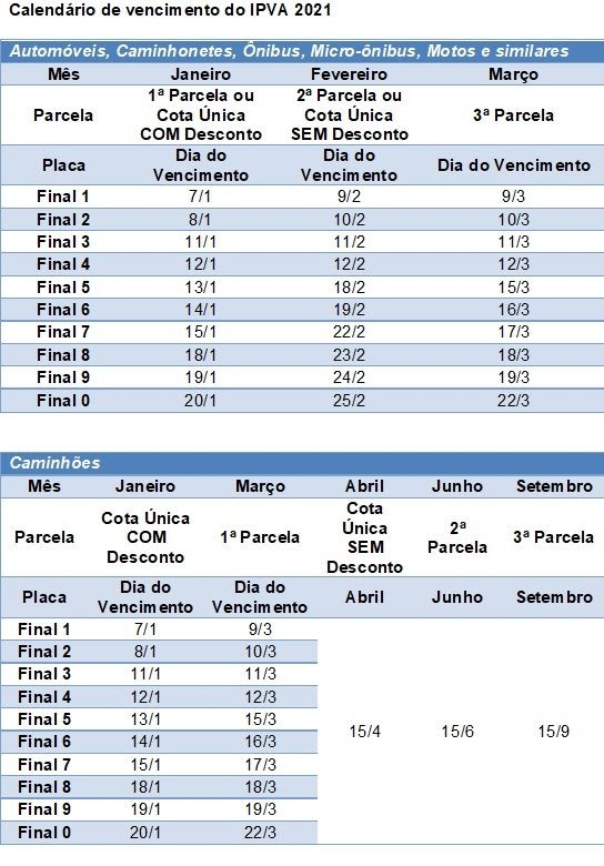 O proprietário tem até a data de vencimento da placa (veja tabela) para quitar o imposto em cota única, com desconto, ou pagar a primeira parcela do tributo.