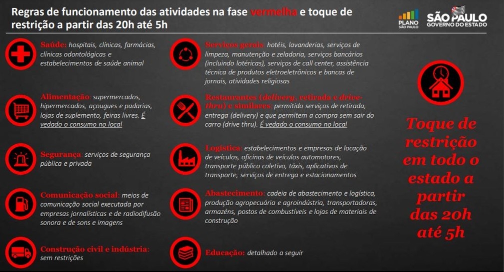 Atividades liberadas na fase vermelha