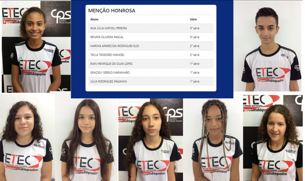 "Parabéns a todos que participaram e em especial aos alunos vencedores: Thiago Gonçalves Baptista; Maria Cecilia Mariano; Giovana Tanganeli Molina; Augusto Eredia Aiello Gazola; Ana Júlia Matioli Pereira; Renata Oliveira Pascal; Marina Aparecida Rodrigues Eloi; Tayla Teodoro Manoel; Rian Henrique Da Silva Lopes; Graziely Serejo Maranhão e Júlia Rodrigues Paganini", celebrou a direção da Etec.