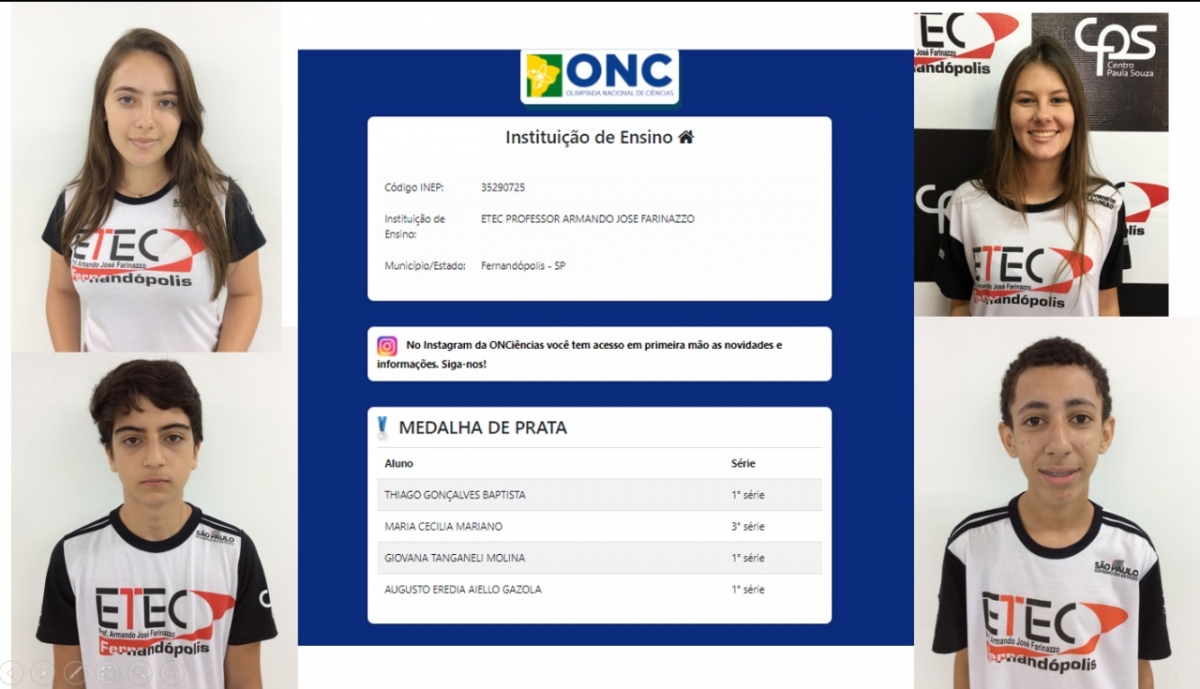 No ano de 2020, 120 alunos da Etec Professor Armando José Farinazzo de Fernandópolis, englobando as duas turmas do Ensino Médio em Exatas e uma do Química Integrado ao Ensino Médio, realizaram a primeira fase da Olimpíada nos dias 06 e 07 de agosto.