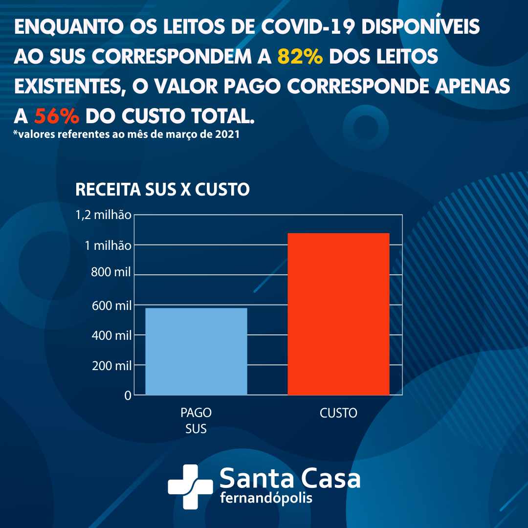 A Santa Casa de Fernandópolis usou as redes sociais na tarde desta terça-feira, 27, para expor a gravidade do desequilíbrio orçamentário entre o custo dos leitos para Covid-19 e o valor repassado pelo SUS – Sistema Único de Saúde.