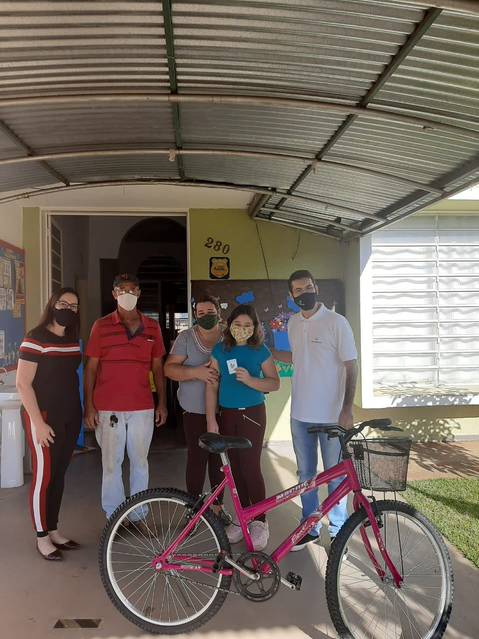 O sorteio foi realizado no dia 25/05/2021 na Escola Municipal de Ensino Infantil e Ensino Fundamental Elza Rodrigues de Lima, tendo a diretora Marielen Durval S. Rocha realizado o sorteio. A vencedora foi a aluna Ana Clara Rodrigues Simão – ela faz o 4º ano EF em Santa Isabel do Marinheiro e tem 10 anos. A garotinha estava ansiosa em receber o prêmio, ficou bastante feliz quando soube que que tinha sido sorteada e iria receber uma bicicleta, declarando para o biólogo: “Esta é minha cor favorita!”. O prêmio foi entregue pelo biólogo da Renova Mundo e pela diretora da escola municipal à aluna que estava acompanhada dos pais. A mãe disse ao biólogo: “Ela estava muito ansiosa em buscar a bicicleta, quase não dormiu à noite”.