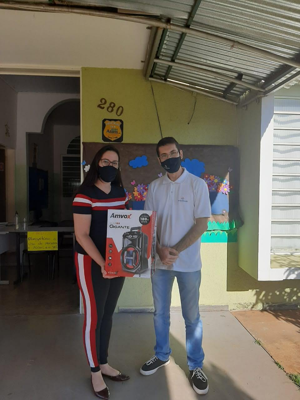 A escola municipal que a aluna está matriculada também foi premiada com uma caixa de som para as atividades lúdicas em sala e aulas de inglês.