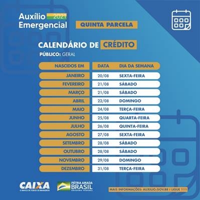Foi divulgado no final da tarde de ontem, 12, o calendário de pagamentos das parcelas extras do Auxílio Emergencial 2021 para o público que se cadastrou no site/APP do programa em 2020 ou que fazem parte do Cadastro Único a partir do dia 20 de agosto. Ao todo, serão três novas parcelas.