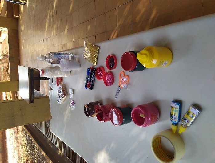 Os alunos receberam um material didático no qual possuía uma “casinha do feijão” com um vaso, terra e semente para plantio. Os alunos receberam matérias como tinta, lantejoulas, cola, glitter, etc. para decorar o vasinho de planta e depois realizaram o plantio conforme orientações da equipe de campo da Renova Mundo. Por fim também realizaram a confecção de um cartaz com a temática da oficina.