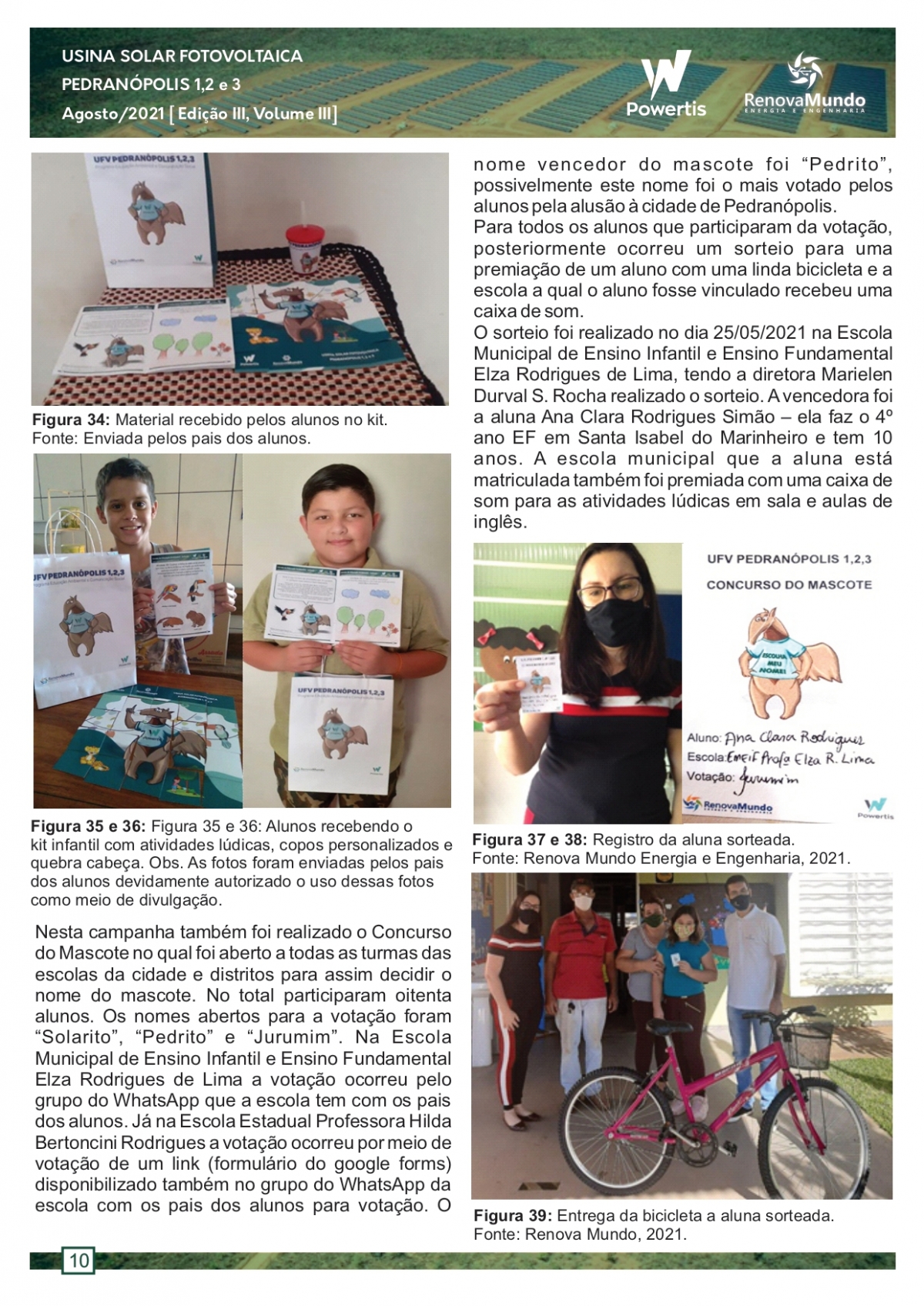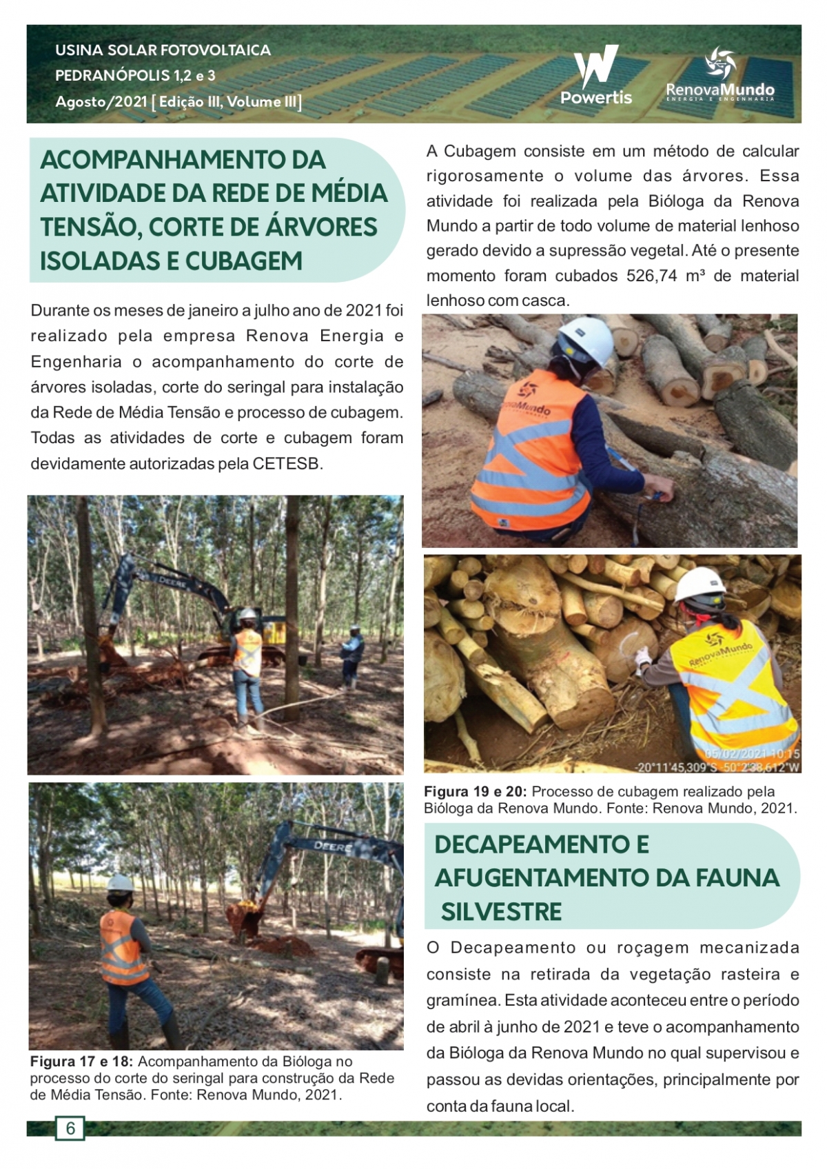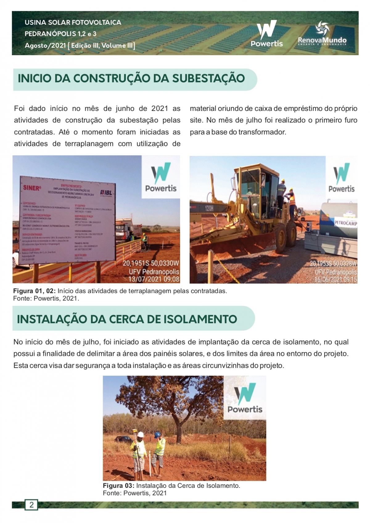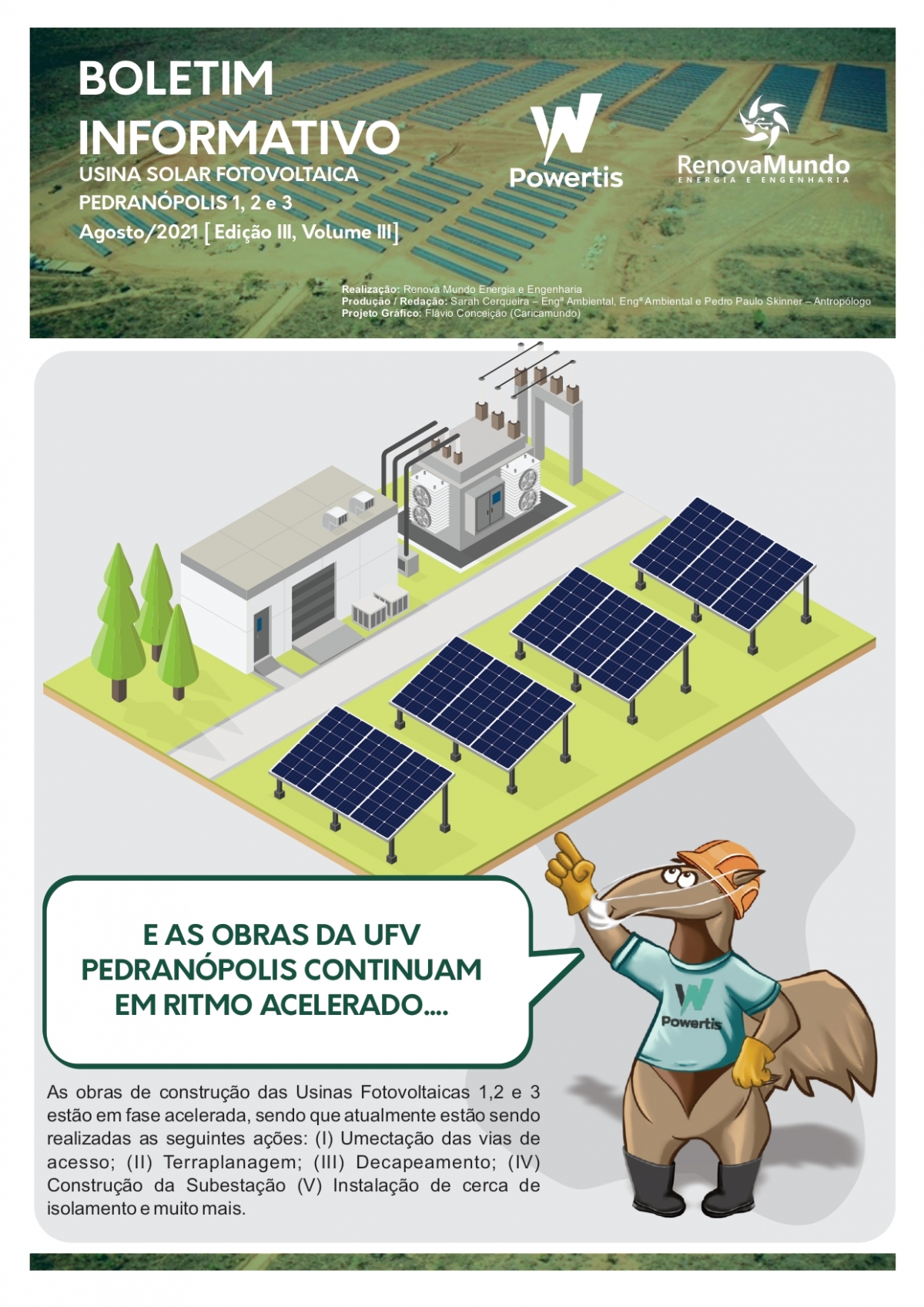 No período de 23 a 30 de agosto de 2021 a Renova Mundo Energia e Engenharia em parceria com a empresa POWERTIS realizou a 3ª Campanha referente aos Programas de Educação Ambiental e Comunicação Social nas áreas de influência da USINA SOLAR FOTOVOLTAICA PEDRANÓPOLIS 1, 2 e 3.