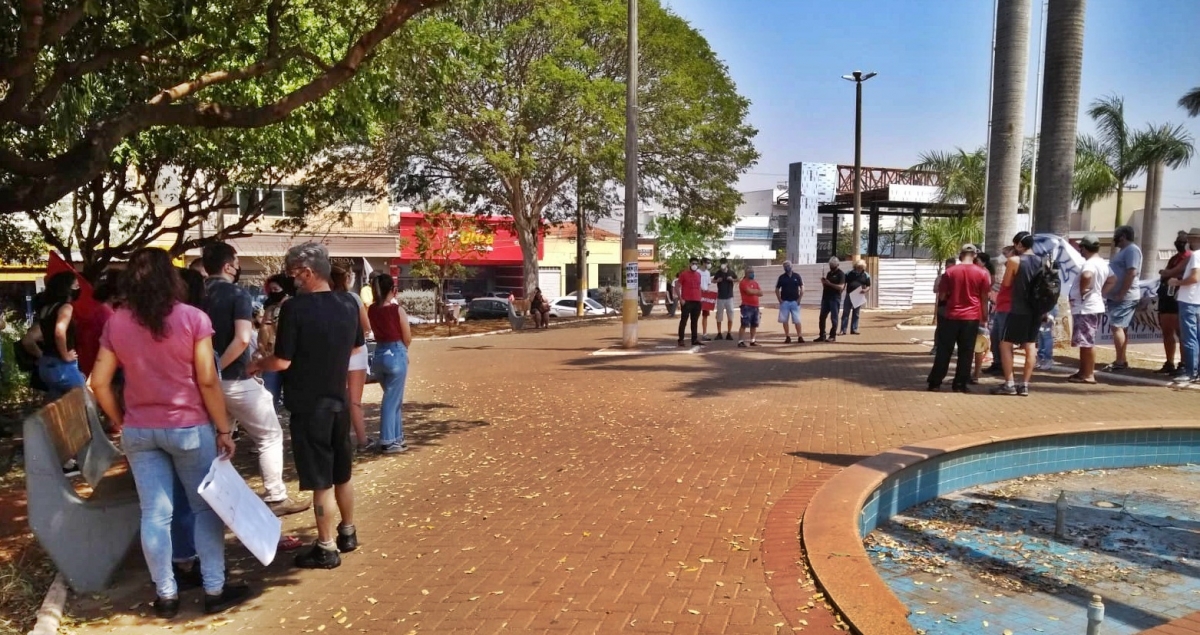 O ato contra o governo Bolsonaro ocorreu na Praça Joaquim Antonio Pereira no fim da manhã. O forte calor fez com que as pessoas buscassem abrigo nas sombras das árvores. Partidos de esquerda, sindicalistas e apoiadores do ex-presidente Lula participaram do ato.A Polícia Militar acompanhou a manifestação.