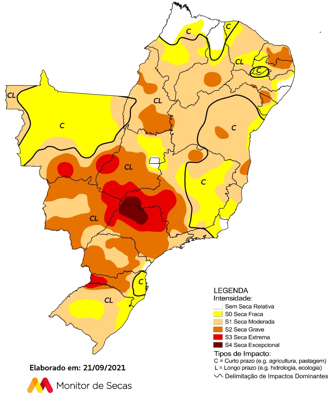 Entre julho e agosto devido à persistência de chuvas abaixo da média, a seca excepcional, a mais severa da escala do Monitor de Secas da ANA – Agência Nacional das Águas - avançou no noroeste paulista e no Triângulo Mineiro. Os efeitos da pior estiagem que provoca uma onda de queimadas também atingem em cheio o nível dos reservatórios das usinas hidrelétricas da região.