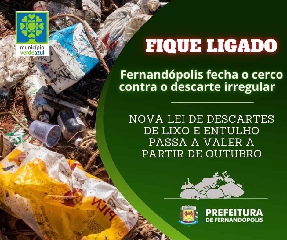 A partir do próximo dia 10 de outubro entra em vigor a nova Lei Municipal 5.025 de 2.020 que institui a nova política municipal de resíduos sólidos. Com isso, a pessoa jurídica ou física que for flagrada fazendo o descarte irregular em área urbana ou rural terá que pagar, além das multas já previstas no âmbito federal e estadual, as novas regras municipais.