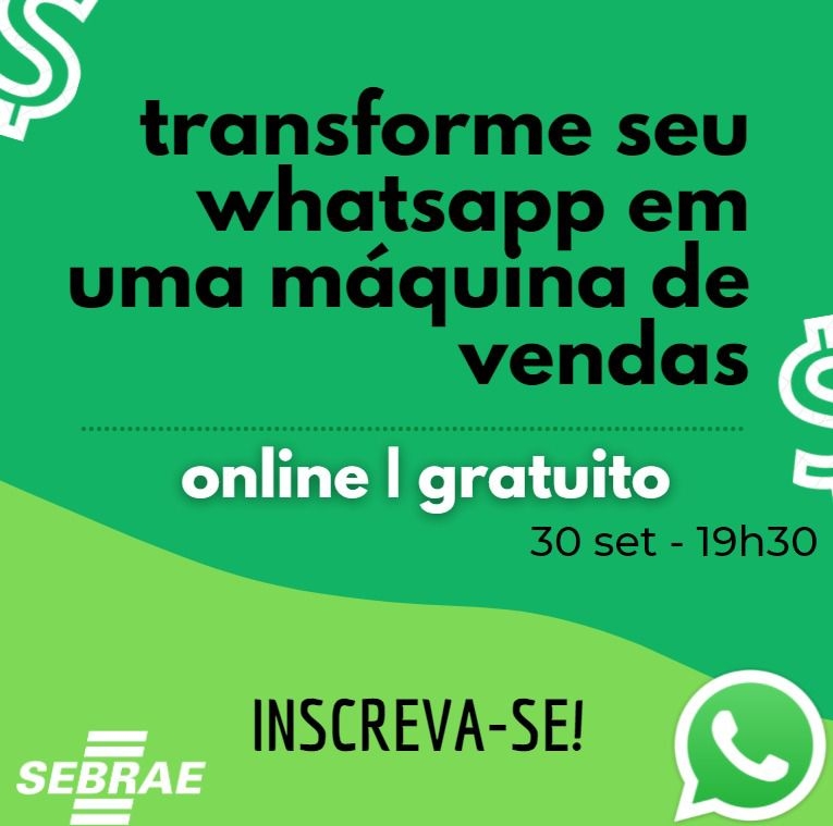 O Sebrae - Serviço Brasileiro de Apoio às Micro e Pequenas Empresas – irá realizar amanhã, 30, uma live com o tema ‘Transforme seu WhatsApp em uma máquina de vendas’.