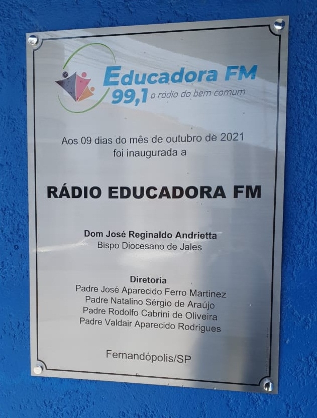 Com celebração na Igreja Matriz Santa Rita de Cássia, com a presença do Bispo Dom Reginaldo Andrietta, foi inaugurada na manhã de hoje a Rádio Educadora FM que opera no prefixo 99,1. A cerimônia contou com a participação do padre Natalino Araújo e todos os padres de Fernandópolis. O Sistema Líder de Comunicação foi representado no ato pelos diretores Darci Araújo e Glenda Scandiuzi.