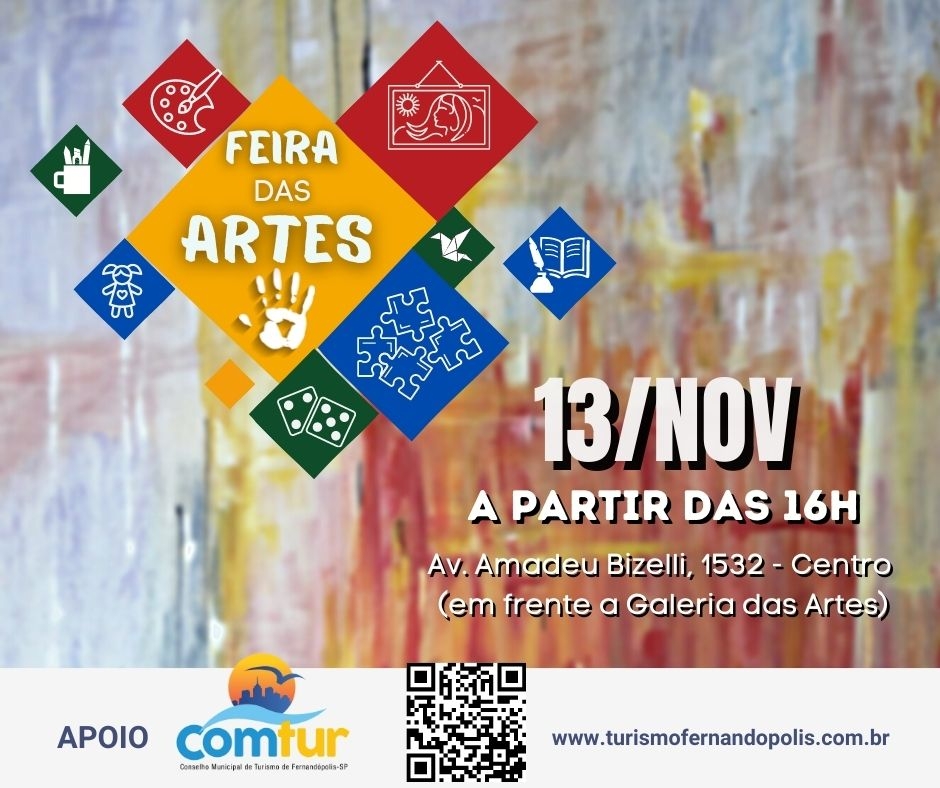 Amanhã, 13, das 16h às 21h mais uma edição da Feira das Artes. O evento, que reúne cerca de 35 artesãos, acontece na avenida Av. Amadeu Bizelli, nº 1532, Centro (em frente à Galeria das Artes).