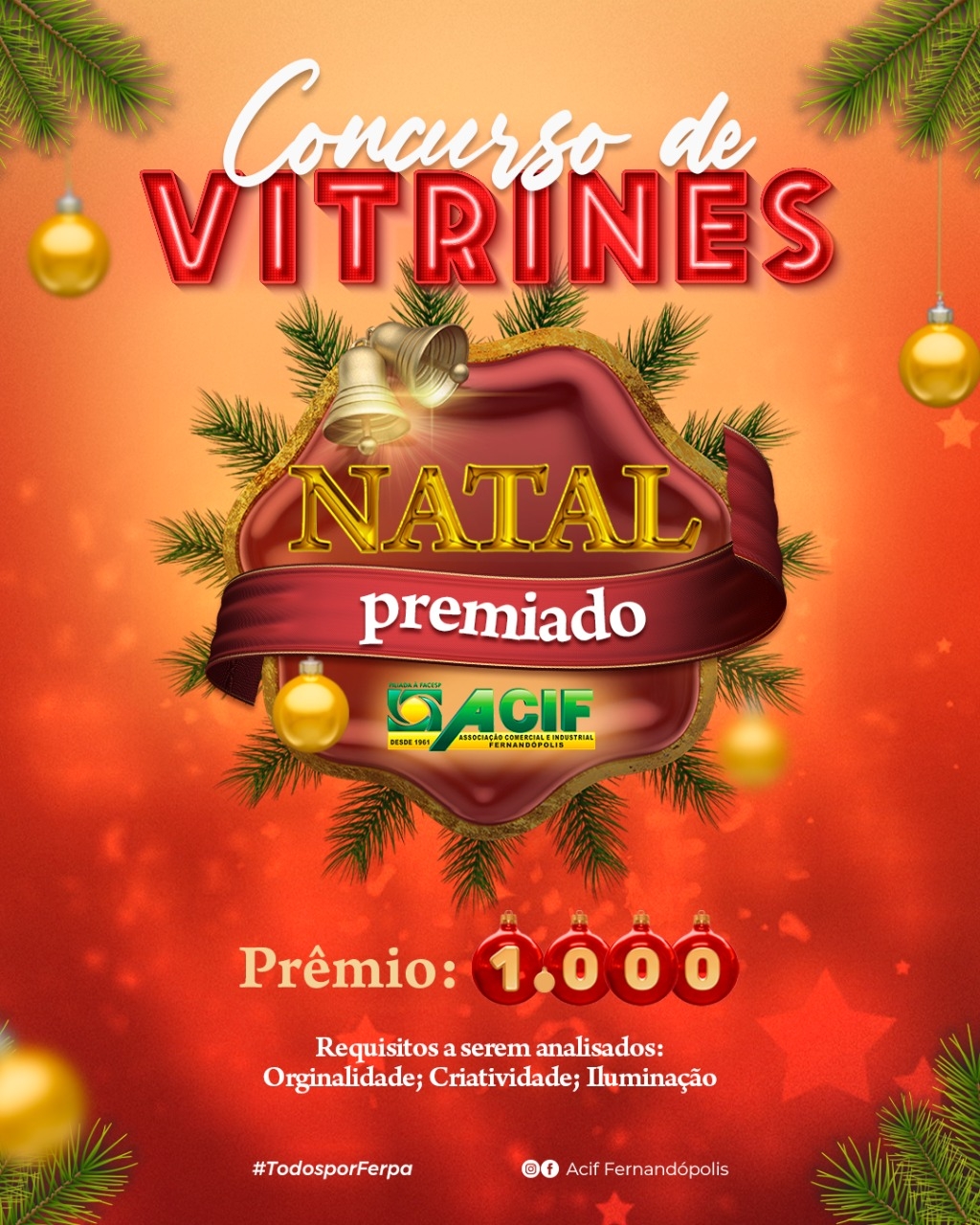 A ACIF – Associação Comercial e Industrial de Fernandópolis – já iniciou a divulgação do ‘Concurso de Vitrines de Natal’ no comércio da cidade. Os participantes irão concorrer ao prêmio de mil reais.