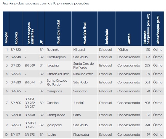 “É desafiador liderar o ranking e manter a qualidade das nossas estradas. Mais que investimentos, é preciso planejamento estratégico para superarmos os desafios de logística que se impõem. Olhamos este retrato com o compromisso de buscar inovação em nossa infraestrutura rodoviária”, afirma Rodrigo Garcia, vice-governador e secretário de Governo de São Paulo.