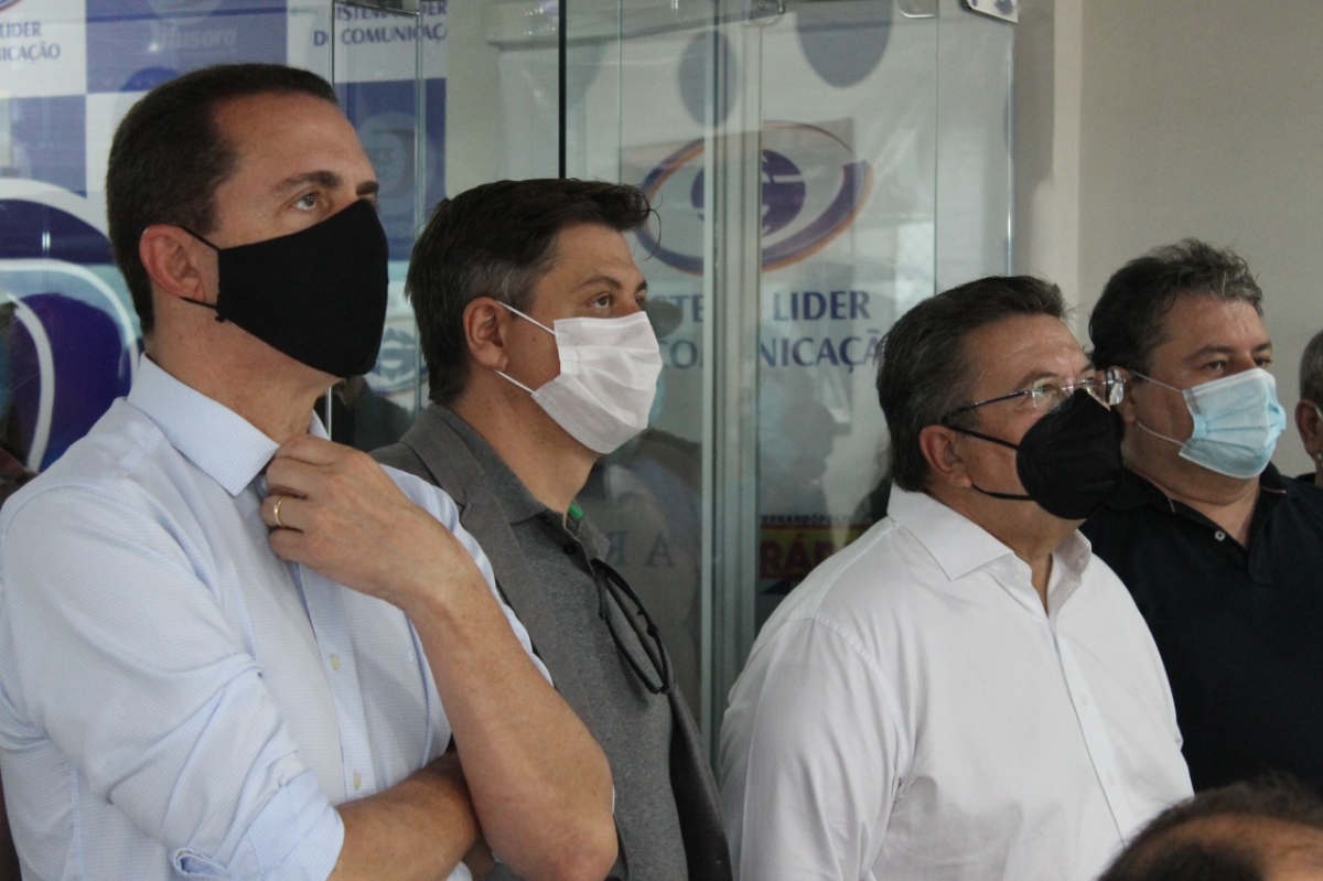Deputado e secretário da Agricultura Itamar Borges, Prefeito André Pessuto, presidente da Assembleia Legislativa Carlão Pignatari e vice-prefeito Artur Silveira, na inauguração da Difusora FM