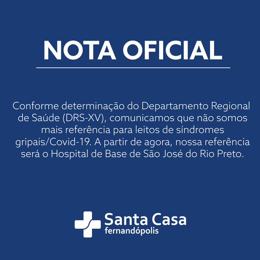 A Santa Casa de Fernandópolis divulgou na tarde de hoje, 20, um comunicado oficial para anunciar que não possui mais leitos credenciados para atendimento de Covid-19.
