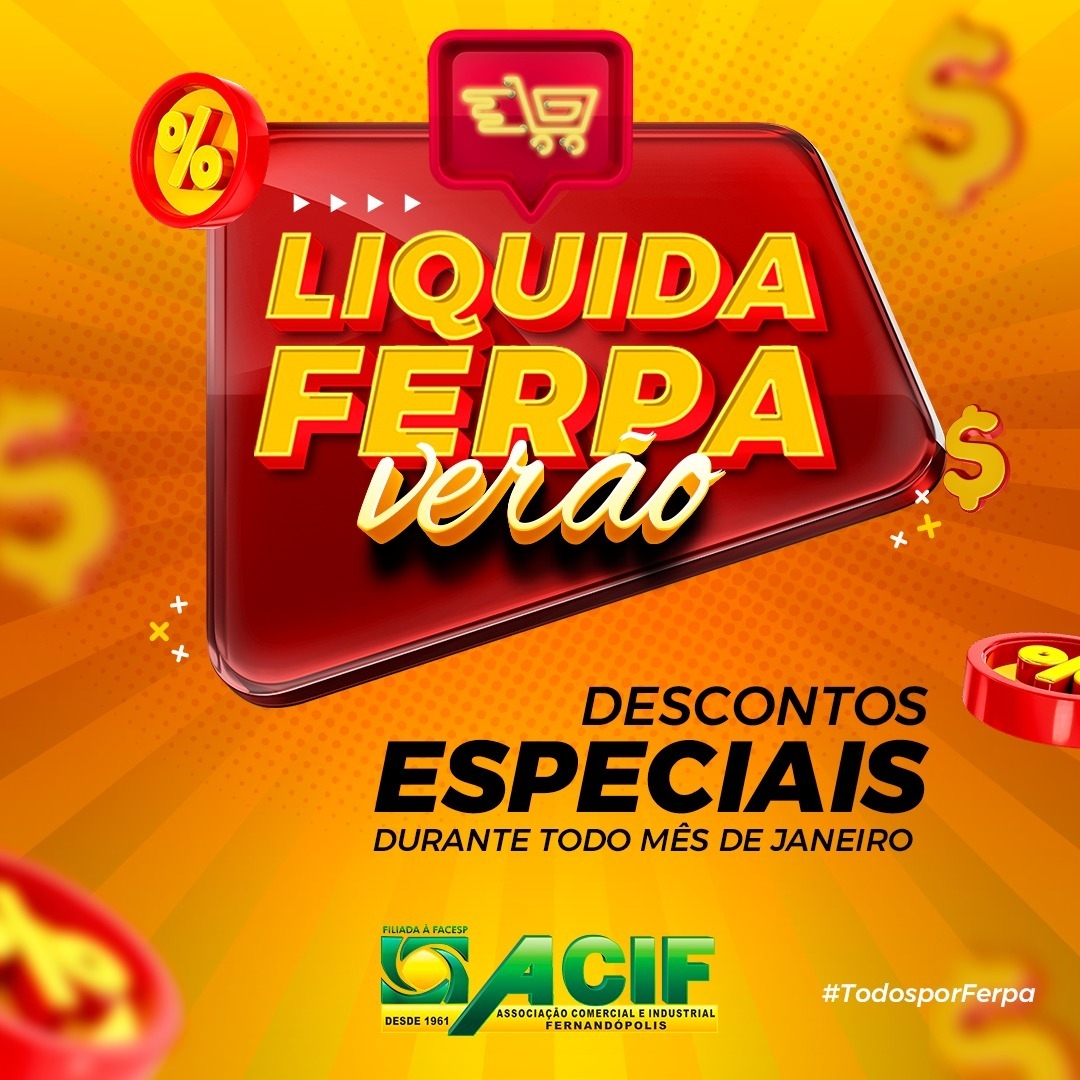 O primeiro dia útil do ano de 2022 começa com a maior liquidação do ano no comércio de Fernandópolis. Realizado pela Associação Comercial e Industrial de Fernandópolis - ACIF -, o Liquida Ferpa Verão 2022 tem como objetivo estimular o comércio local por meio de descontos especiais durante todo o mês de janeiro.