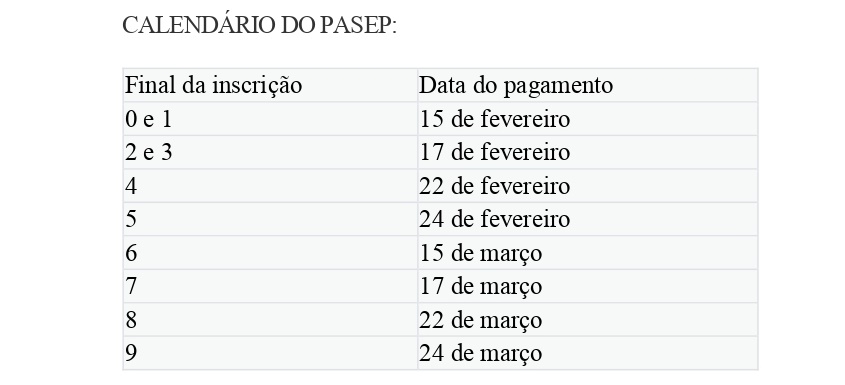Finalmente o calendário de pagamentos do abono salarial foi divulgado pelo Governo Federal. O pagamento passa a ser realizado no primeiro semestre do exercício fiscal seguinte.