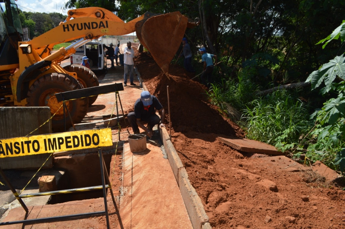 Durante a manhã da última segunda-feira, 07, e por toda a terça-feira, 08, diversas tampas de bueiros foram refeitas e recolocadas, a afim de evitar incidentes decorrentes das fortes chuvas e enxurradas.