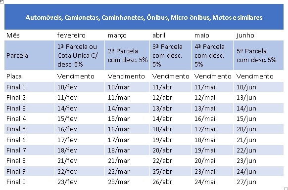 Neste ano, a opção de parcelamento também dá ao motorista direito de desconto de 5% no valor do tributo. Quem perder o prazo precisará pagar o valor integral do imposto e sem direito ao desconto.