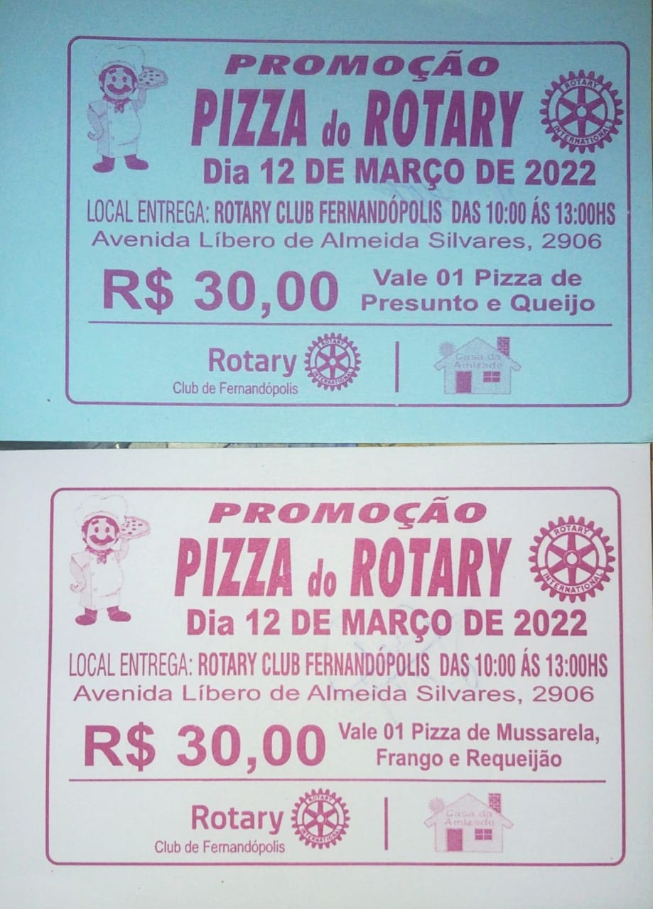 Os companheiros rotarianos do Rotary Club Fernandópolis e as damas da Casa da Amizade iniciaram as vendas da tradicional promoção “Pizza do Rotary”. O evento será realizado no próximo dia 12 de março.