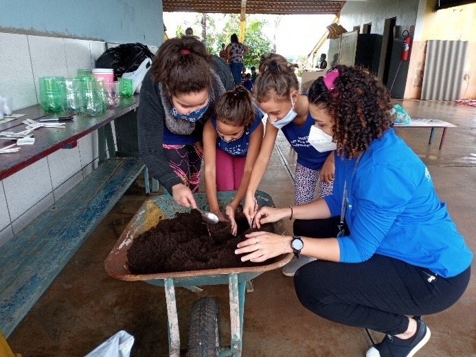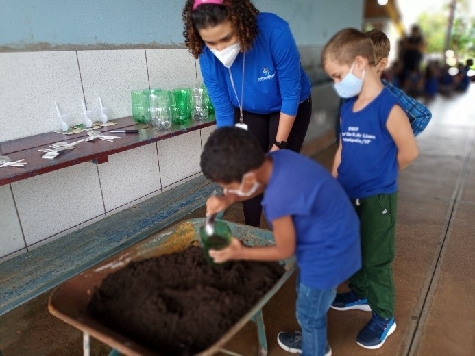 A equipe Renova Mundo conversou um pouco sobre a importância de preservar o meio ambiente e da possibilidade de realizar essa mesma atividade em casa utilizando materiais recicláveis, como garrafas pet, copos de requeijão usado, dentre outros. O plantio foi feito por todos/as e contou com a participação dos funcionários da escola, que também se engajaram nas atividades e demonstraram bastante satisfação.
