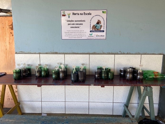 A atividade teve como temática a produção de uma Horta Comunitária a partir de materiais recicláveis como garrafas pet. A atividade foi realizada no turno matutino contando com a participação de 48 alunos e no turno vespertino, contando com 49 alunos. Em ambos os turnos teve a participação de professores e demais funcionários da escola