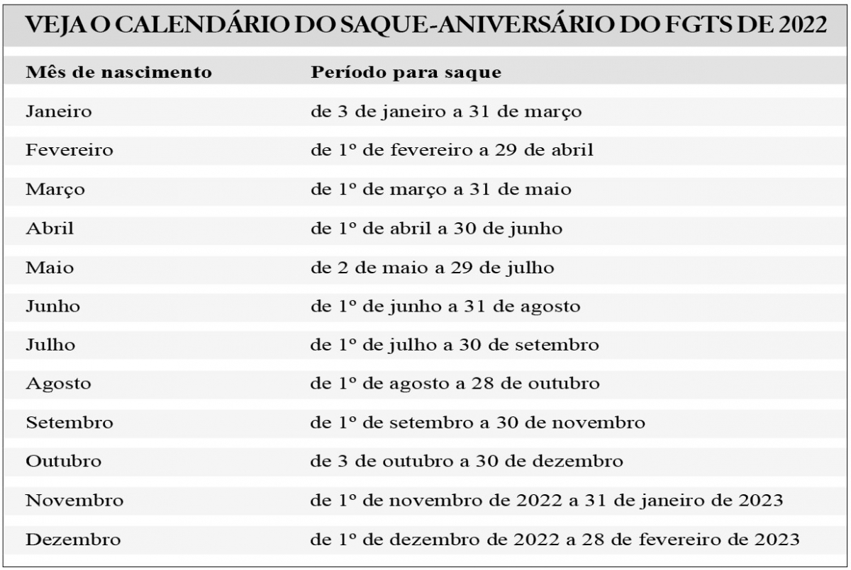 Para aderir a esta modalidade, o trabalhador deverá optar pelo saque-aniversário até o último dia do mês de nascimento. Caso contrário, só receberá a partir do ano seguinte.