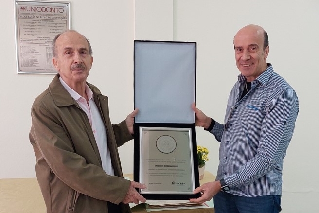 Para celebrar esse marco em sua história, a entidade recebeu no último dia 14 de junho uma placa comemorativa da OCESP - Organização das Cooperativas do Estado de São Paulo – entregue por seu superintendente Aramis Moutinho. A placa foi entregue durante um coquetel com a presença da diretoria da Uniodonto e também de seu fundador, o dentista Jesiel B. Macedo. “Estes 25 anos de existência, demonstram que a Uniodonto é uma empresa sólida e atuante no mercado de prestação de serviços odontológicos”, disse o atual presidente, Eduardo H. D'Avila.