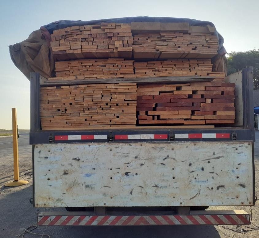 Os policiais averiguaram e confirmaram que tratava-se de documento inválido. Os caminhões transportavam 47,90 metros cúbicos de madeira, que foram apreendidas juntamente com os veículos e os motoristas foram multados por infrações ambientais no total de R$ 14.370,00.