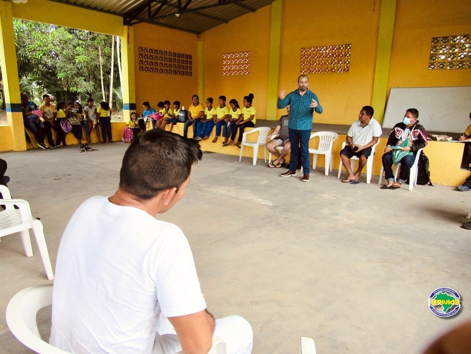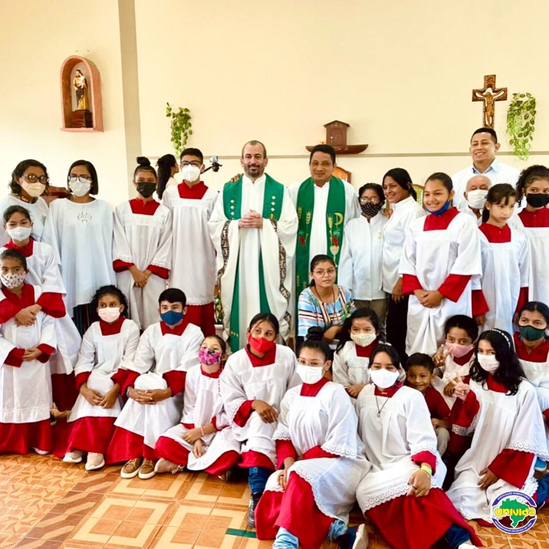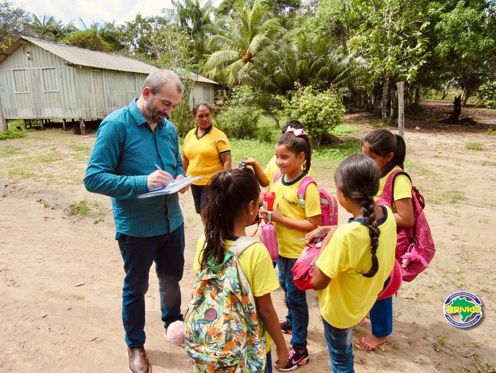 Após navegar horas pelo Rio Maués-Açu, avistamos a comunidade que nos aguardava. Fiquei encantado com tudo o que via, pelas margens do rio e nos barrancos, havia uma alegre comitiva de boas-vindas, muitas pessoas aguardando pelo padre que veio de São Paulo. Ali, antes mesmo de desembarcar, já me senti abraçado por aquela gente e pensei que este momento me trouxe o prazer maior que pude encontrar na Amazônia. Aquelas crianças, homens e mulheres que estavam ali me recepcionando revelavam a mim a humanidade que possuíam, na simplicidade do receber, no contentamento em suas expressões, no colorido de suas roupas e no alarido de suas vozes. O Humano mais bonito, mais profundo e mais sincero que alguém poderia encontrar. Estavam ali, em sua essência e em entrega, consentindo minha presença entre eles, aguardando pelas novidades que a Missão UNIVIDA lhes trará. E, em comitiva, me acompanharam nas visitas, primeiro até uma pequena igreja, dedicada a Santo Antônio e São Sebastião, depois fomos ao Posto de Saúde e à escola. Tudo muito isolado do mundo que conhecemos, sem sinal para celular e sem internet, prevalecendo a essência da comunicação verbal, palavras ditas e ouvidas, face a face. Toda essa proximidade me fazia experimentar o mistério que ali se mostrava, a essência da simplicidade da vida, o quanto vale estar perto do outro, sem barreiras, sendo o que cada um de nós é de verdadeiro, os laços estabelecidos e a fraternidade espontânea.