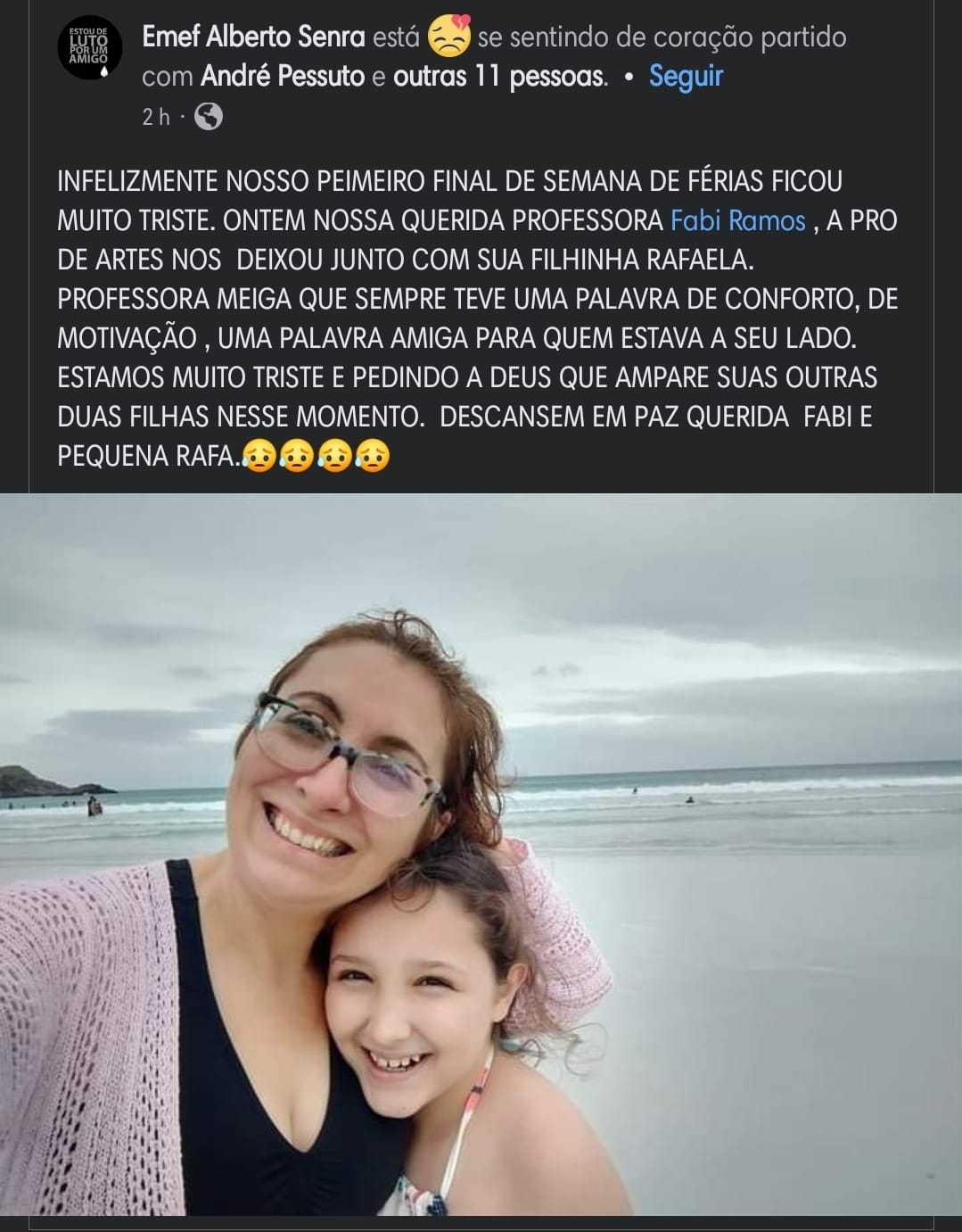 Nas redes sociais amigos lamentaram a morte de Fabiane que era professora na EMEF Alberto Senra.