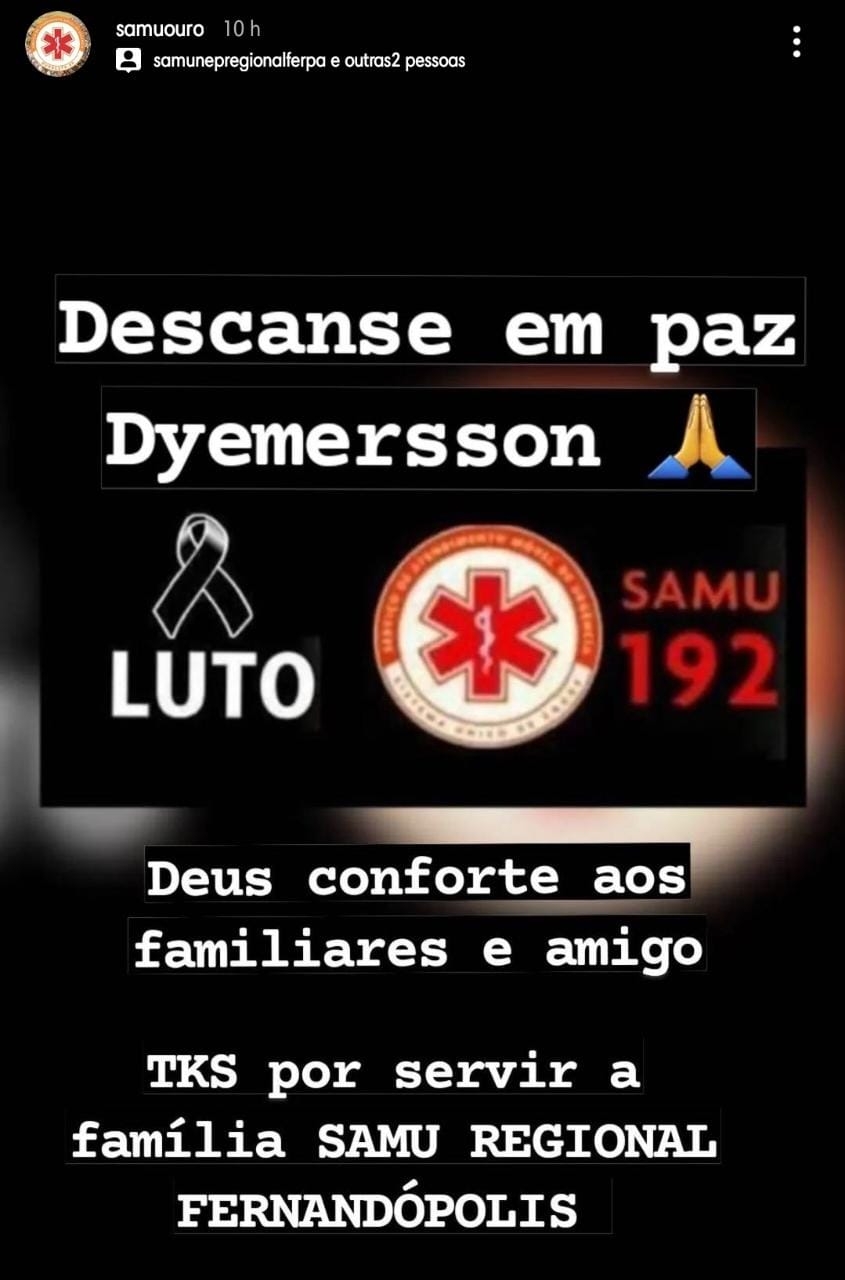 Ele trabalhava no SAMU de Ouroeste (regional Fernandópolis), em uma publicação nas redes sociais amigos e Equipe do SAMU de Ouroeste prestaram homenagens ao homem agradecendo pelos serviços prestados.
