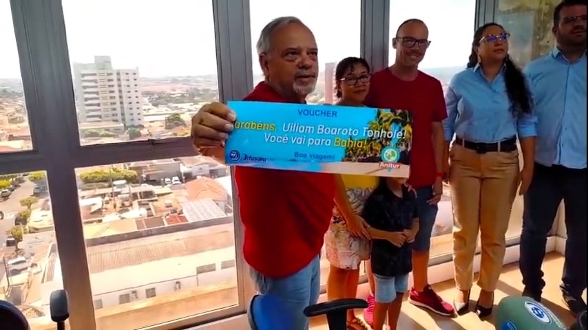 Após a entrega Uilian foi com sua esposa e o pequeno Samuel para o escritório da Anitur Mundo saber os detalhes do seu prêmio e, claro, quando será sua viagem. O prêmio é um pacote de viagem com acompanhante que inclui passagem aérea, hospedagem de uma semana com café da manhã e três passeios (city tour em Porto Seguro, Trancoso e Arraial d’Ajuda).
