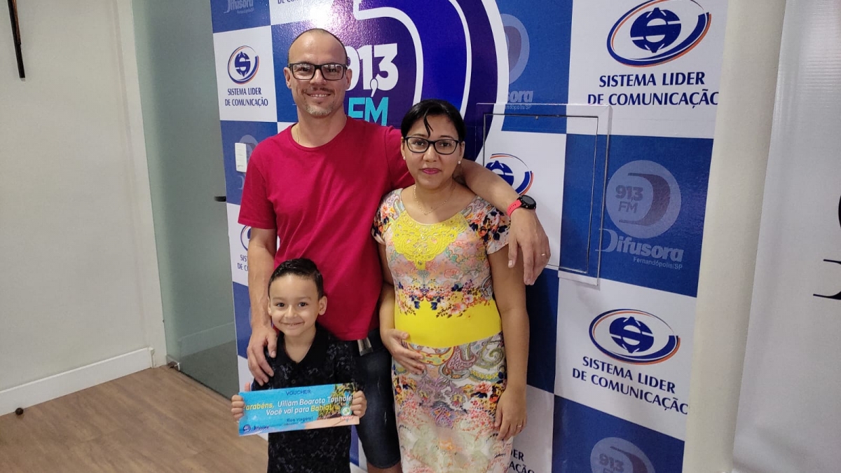 A entrega do voucher para o ganhador aconteceu na manhã de hoje, 15, no estúdio da Difusora com a presença do sorteado com a família, os diretores Darci Araújo e Glenda Scandiuzi e os empresários Rafael Silva e Simone Bispo, da Anitur Mundo. “Gostaríamos de agradecer ao Uiliam pela participação e todos aqueles que se cadastraram e acreditaram”, disse Glenda.