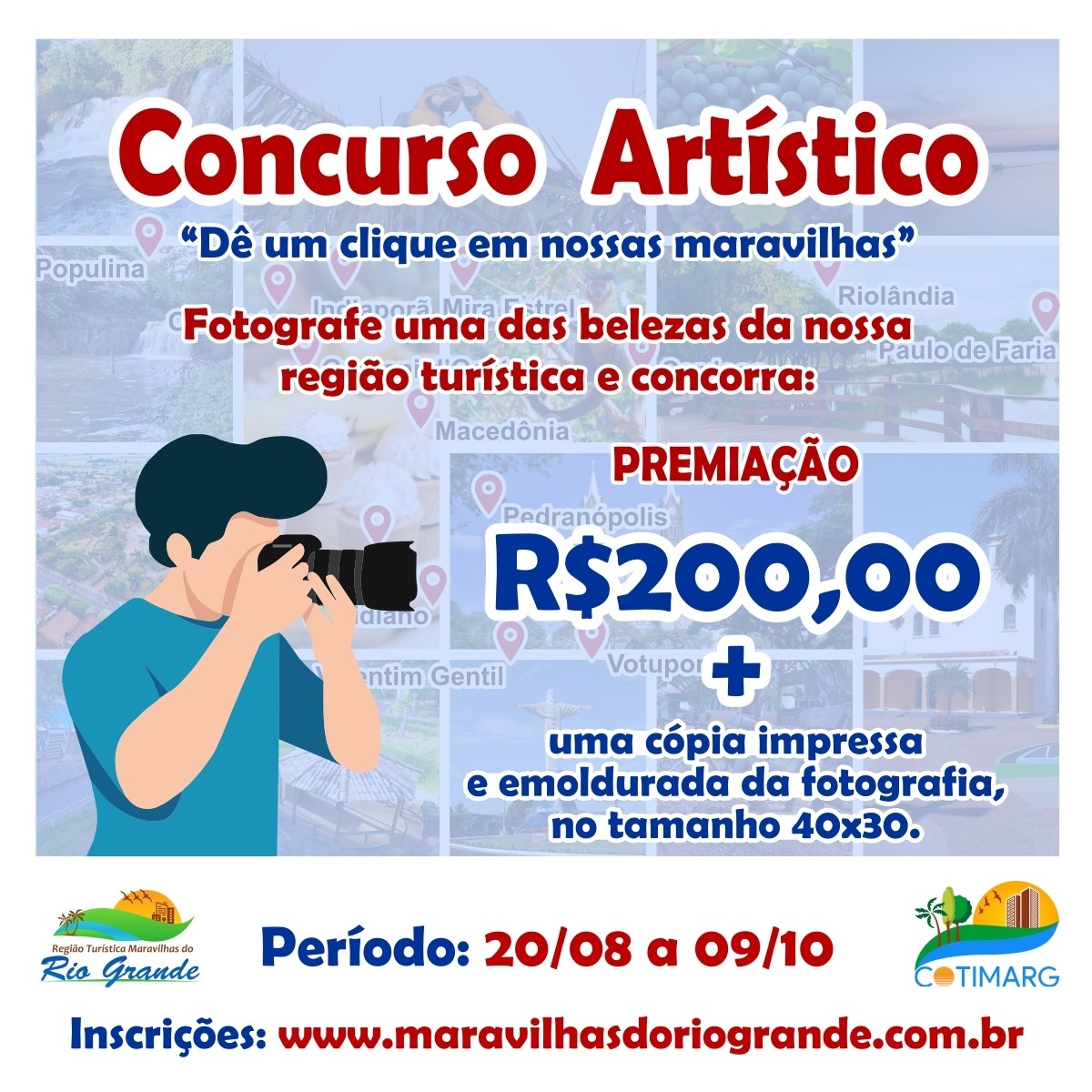 A região turística ‘Maravilhas do Rio Grande’ lançou nesta semana mais um concurso artístico com o objetivo de fomentar o potencial de belezas da região noroeste paulista. Como já ocorrido na campanha pela escolha da mascote, o concurso de fotografia visa estimular que a própria população busque essa integração e um novo olhar para as maravilhas da região.