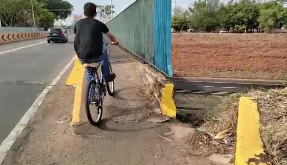 Pedestres e ciclistas que acessam a passarela do viaduto pela rotatória da Avenida Marginal Litério Grecco, sentido bairro/centro, passam a poucos centímetros do precipício já que não há nenhuma grade de proteção. A mureta que direciona a água da chuva para a canaleta que desce o barranco até a rodovia, numa altura de cerca de 5 metros, cria uma ilusão de ótica e pode desviar a pessoa do caminho seguro. Além disso, a rampa íngreme pode levar idosos e criança ao desequilíbrio e consequentemente ao risco de queda. Do outro lado do viaduto, no alinhamento com a Marginal Luiz Brambati, um guard-rail instalado garante a segurança.
