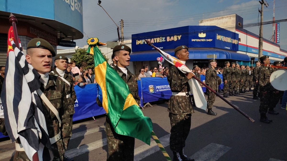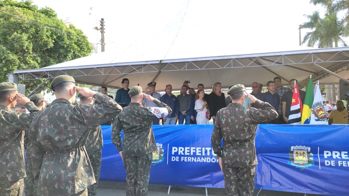 Os atiradores do Tiro de Guerra participaram na abertura, durante a execução dos hinos nacional e da independência, executados pela OSFER – Orquestra de Sopros de Fernandópolis – e depois eles voltaram na parte final com o desfile das forças de segurança pública, que encerram o evento com a tradicional apresentação das viaturas.