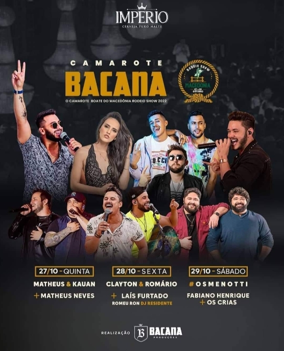 O evento conta com uma estrutura moderna com camarotes empresariais, arquibancada e o requintado Camarote Bacana, que também é a boate oficial da festa com atrações exclusivas para os visitantes. Hoje quem se apresenta é Laís Furtado e Romeu Ron DJ Residente. Com a organização do grupo Bacana Produções a festa conta com o apoio da Cervejaria Império e a cerveja oficial da festa é a Império/Macedônia.